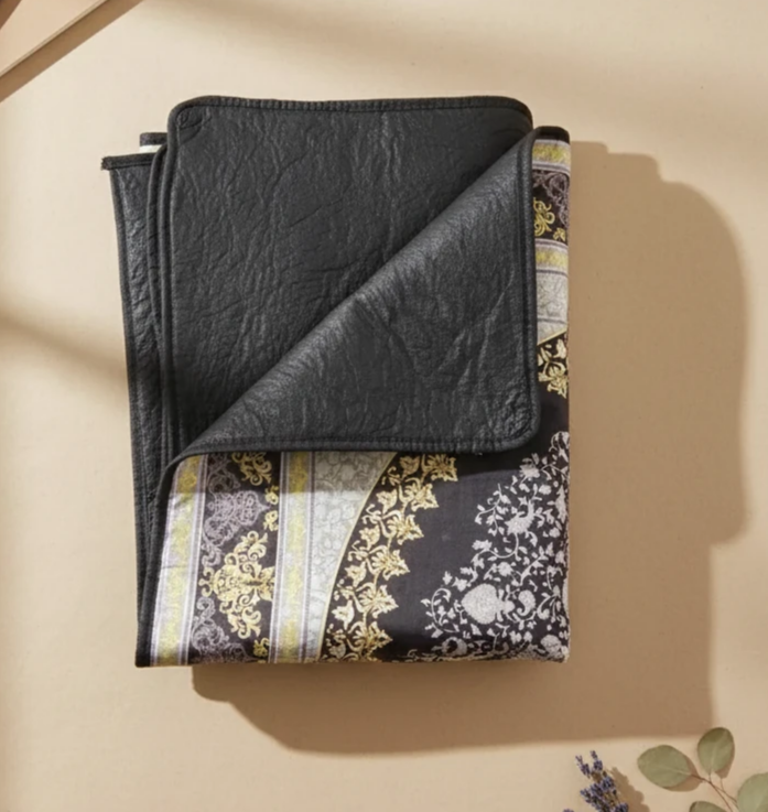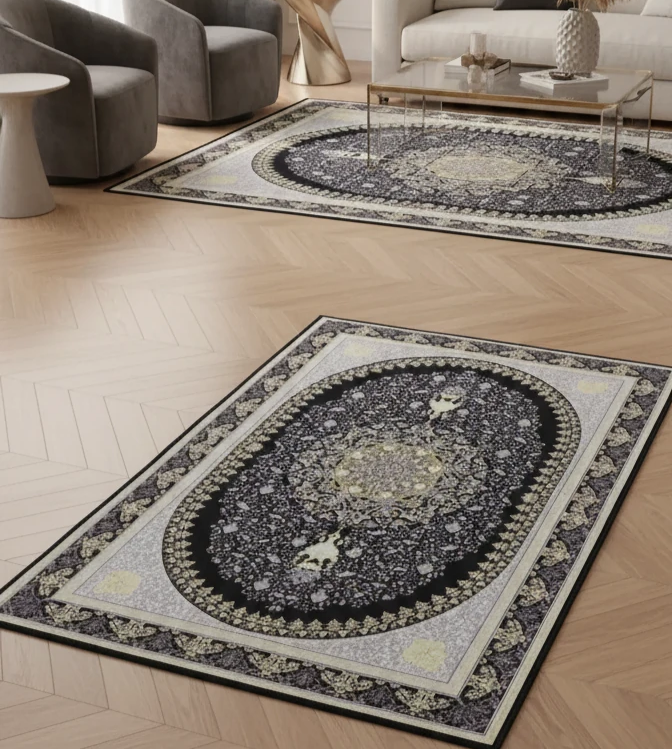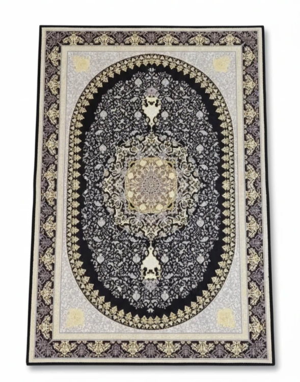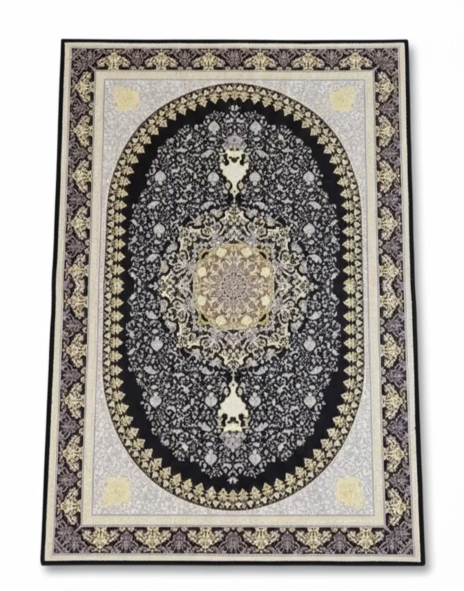 این زیرانداز دارای طرح سنتی الهامگرفته از نقوش اصیل ایرانی است. ترکیب رنگهای مشکی ،طلایی ،طوسی ، جلوهای چشمنواز ایجاد کرده که با هر سبک چیدمان و استفاده در فضای باز یا داخل خانه هماهنگ میشود. رنگها بهصورت چاپ حرارتی مقاوم اجرا شدهاند، بنابراین با شستوشو یا استفاده طولانیمدت کمرنگ و کدر نمیشوند.