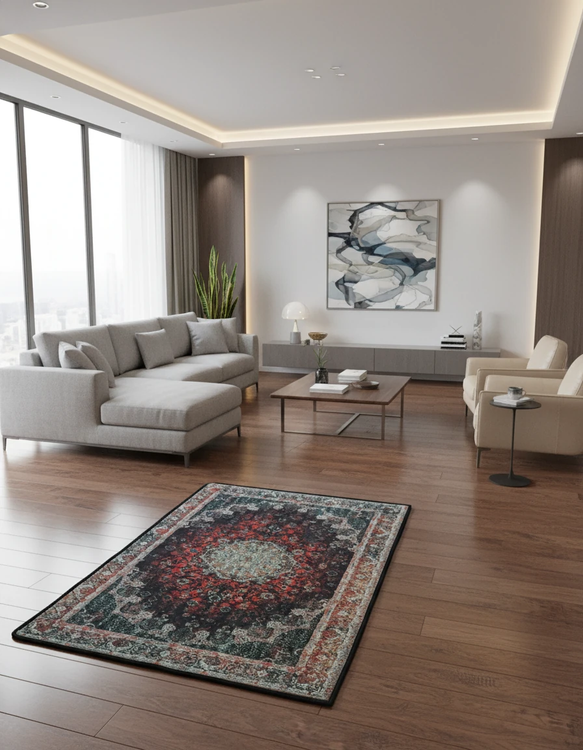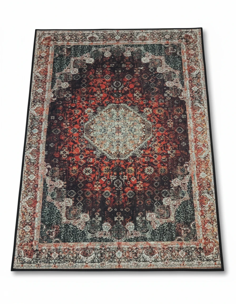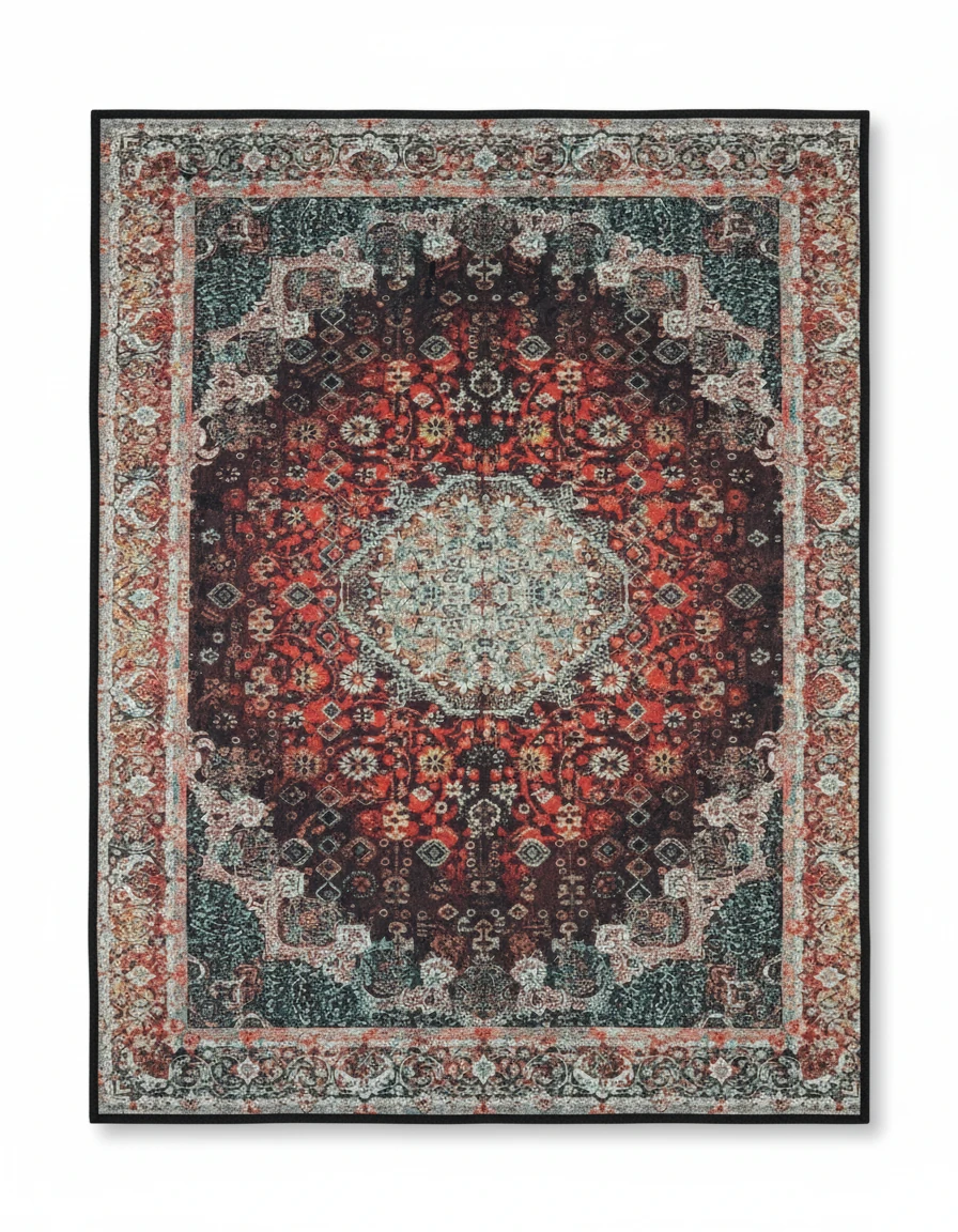 این زیرانداز دارای طرح سنتی الهامگرفته از نقوش اصیل ایرانی است. رنگها بهصورت چاپ حرارتی مقاوم اجرا شدهاند، بنابراین با شستوشو یا استفاده طولانیمدت کمرنگ و کدر نمیشوند.
